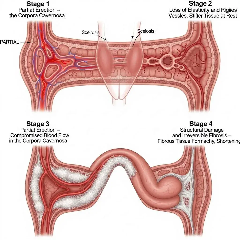 Are incomplete erections becoming increasingly frequent? This is a sign of significant worsening: the blood vessels responsible for filling the penile tissue are failing. Without sufficient blood supply, the tissue begins to lose elasticity, making it stiffer and "harder" even at rest. This condition further weakens responses to erection attempts.